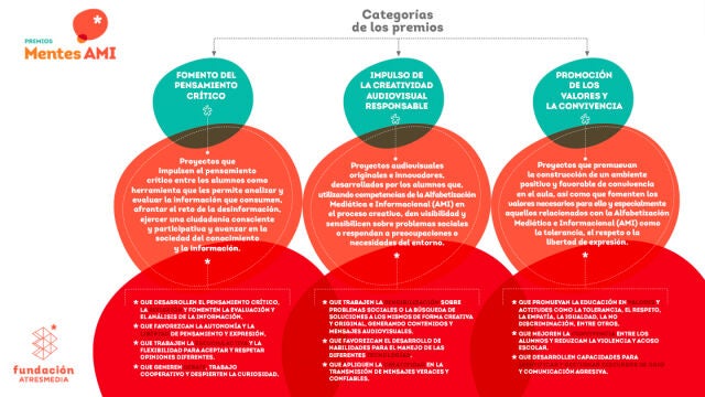 La Fundación Atresmedia pone en marcha la convocatoria educativa Mentes AMI para promover y premiar las buenas prácticas y proyectos de centros educativos y profesores que impulsen la Alfabetización Mediática e Informacional (AMI), llevados a cabo en las aulas de educación primaria, secundaria, bachillerato y Formación Profesional de grado básico y medio durante este curso escolar (2021-2022).