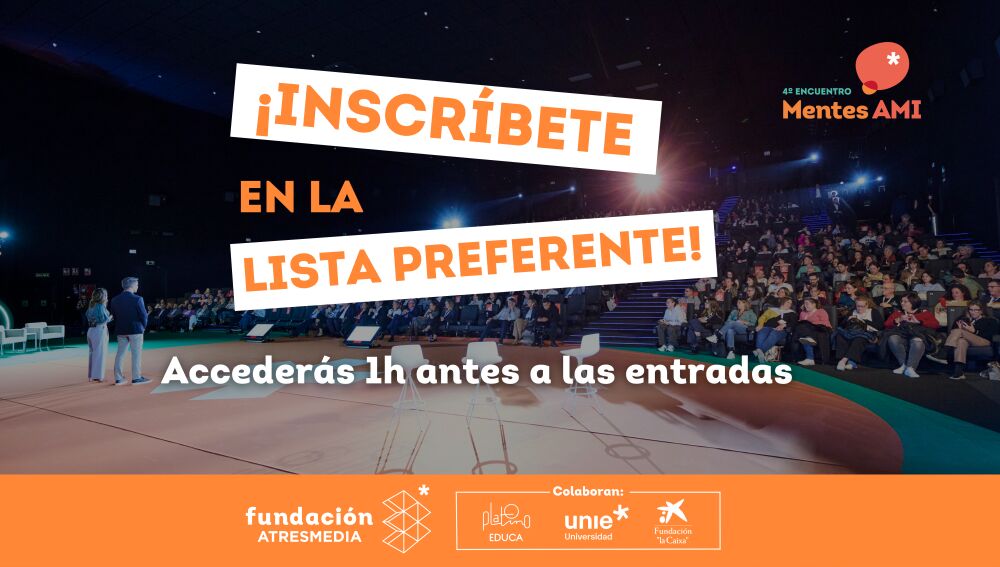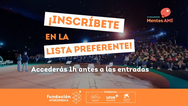 Las entradas para asistir presencialmente a esta gran cita educativa se podrán conseguir gratuitamente a partir del 1 de octubre a las 10:00h a través de la web oficial del evento, www.mentesami.org. Pero hay una forma de asegurarte tu plaza antes: la lista preferente. Si te inscribes en esta lista, podrás acceder a las entradas una hora antes, a las 9:00h del mismo día, aumentando así tus posibilidades de conseguir invitación para asistir presencialmente al evento.