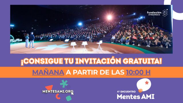 A partir de mañana, 1 de octubre, a las 10:00h, los docentes interesados podrán apuntarse para asistir a la cuarta edición de Mentes AMI, el gran encuentro anual de referencia para la comunidad educativa, que se celebrará el sábado 18 de octubre en Kinépolis, Ciudad de la Imagen (Madrid). La inscripción es gratuita y se realiza completando el formulario al que se puede acceder a través de mentesami.org, hasta completar aforo.